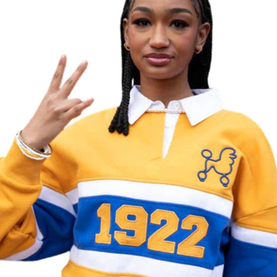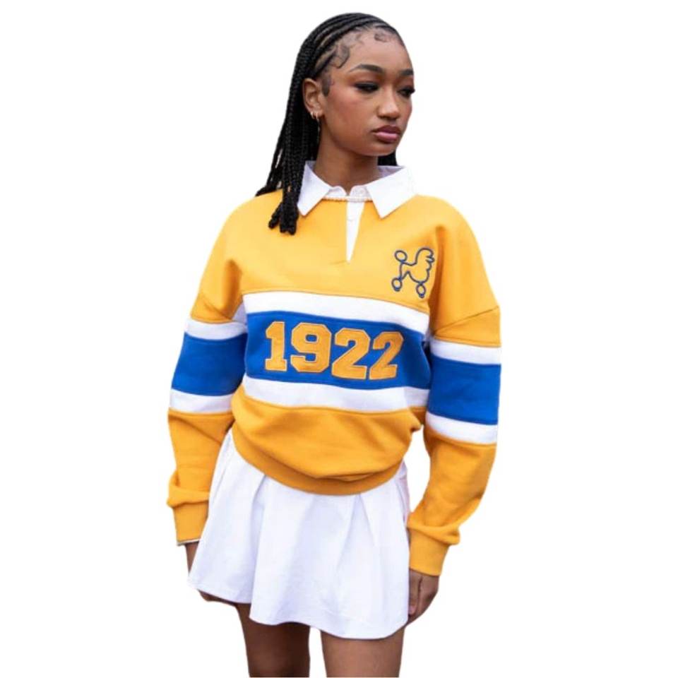 Camiseta de Rugby Sigma Gamma Rho para Mujer, Amarillo y Azul 1922, Polo de Manga Larga, Estilo Deportivo Casual de la Hermandad Griega