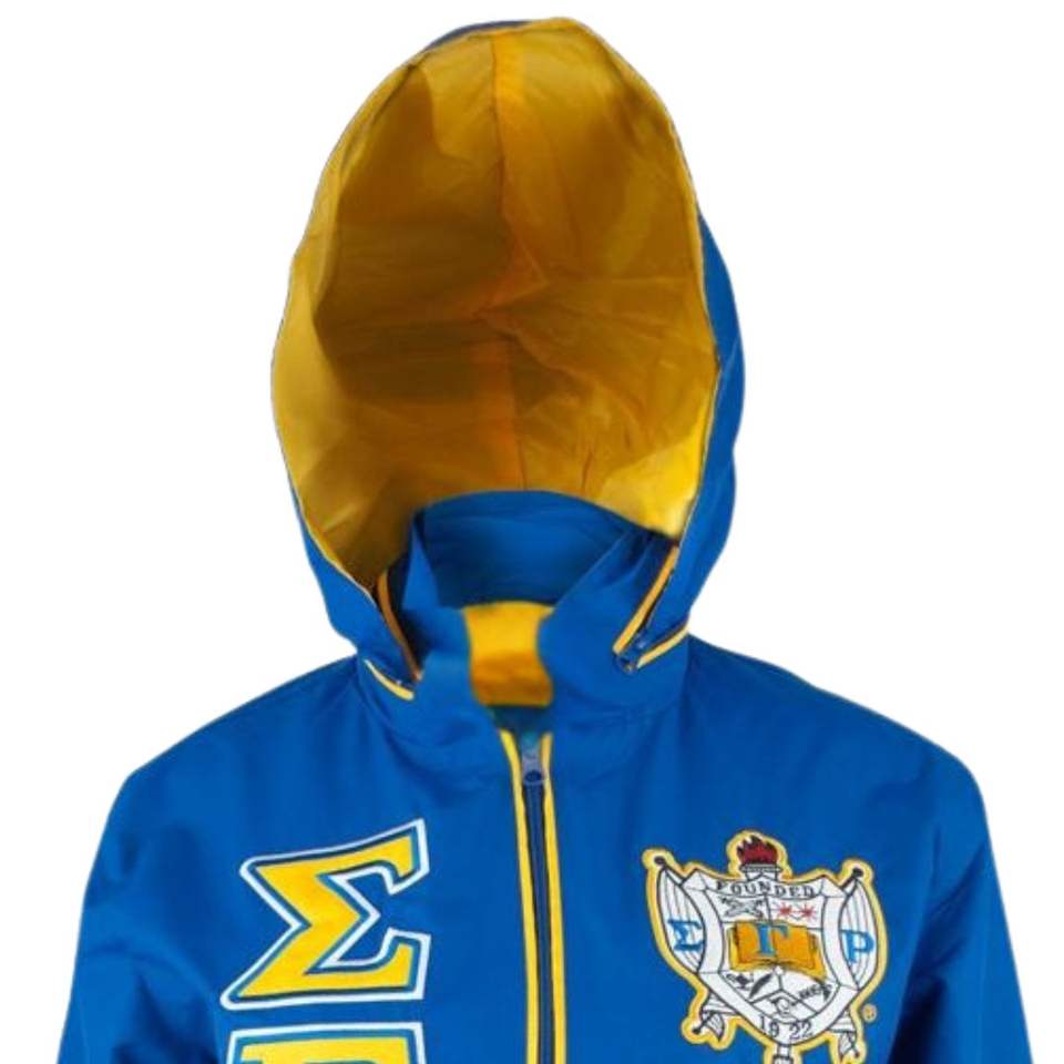 Sigma Gamma Rho SGRho chaqueta cortavientos con capucha 100 poliéster bordado letras griegas hermandad griega vida prendas de vestir exteriores