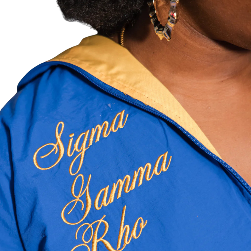 Chaqueta cortavientos reversible Sigma Gamma Rho Sorority Inc para mujer, azul y dorado, ligera, con cremallera, informal