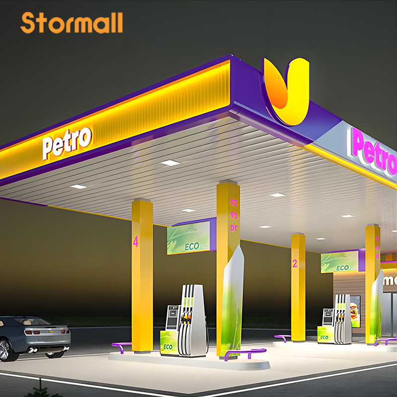 Fábrica de Letreros Personalizados para Gasolineras y Diseño de Accesorios de Acero, Marco de Letrero Micro Pylon, Diseño de Toldo para Gasolinera