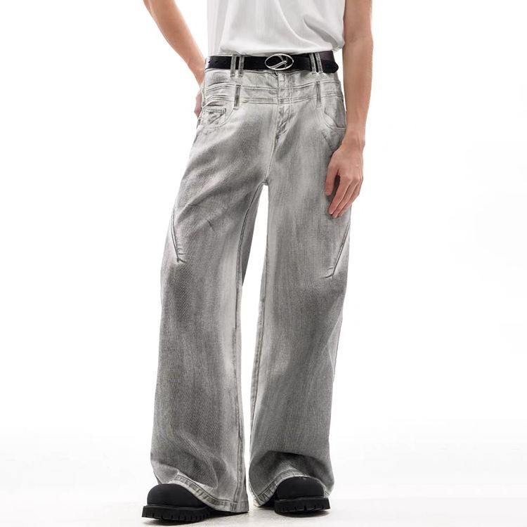 Jeans de Mezclilla de Corte Holgado para Hombre, Estilo Casual Urbano, Estilo Europeo Americano, Holgados, Lavados, de Mezclilla Gruesa