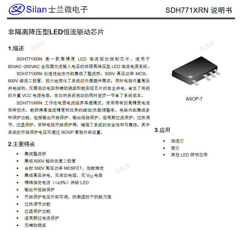 Silans SDH7711ARNTR Paquete de ASOP-7 Buck no aislado LED Controlador de corriente constante IC