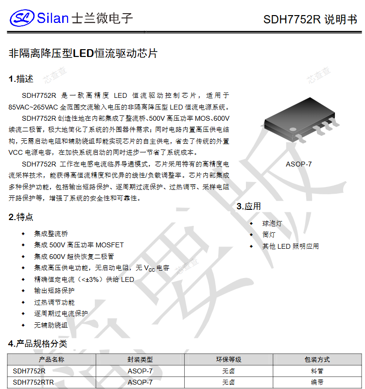 Silans SDH7752R ASOP7 Paquete Buck no aislado LED Controlador de corriente constante IC