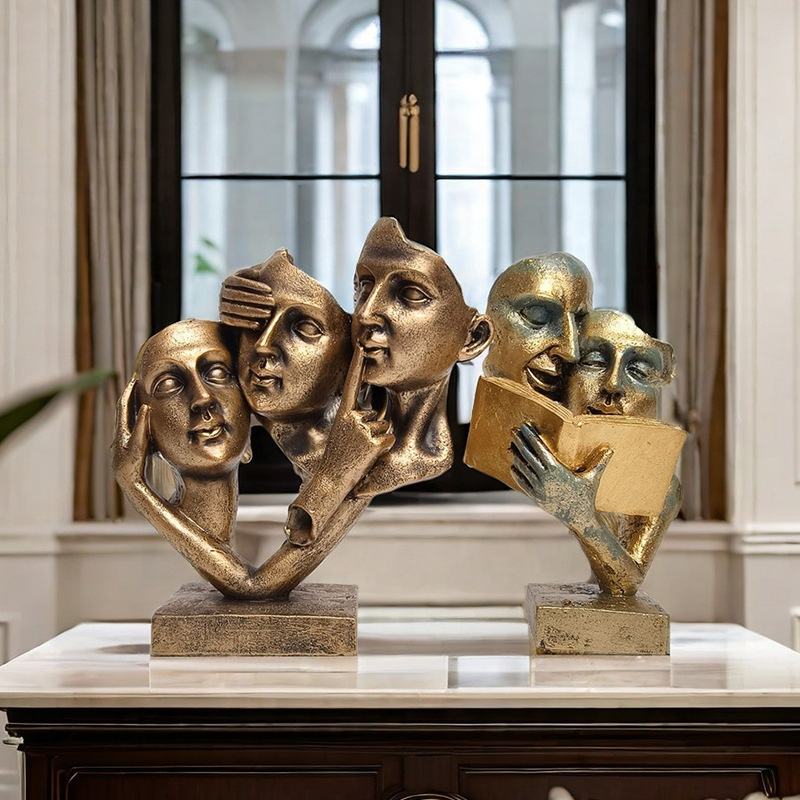 Estatua Modelo Silencio Es Oro, Figuras Abstractas Modernas, Resina Pintada a Mano, Decoración Artística Personalizada con Tema de Amor para Decoración del Hogar