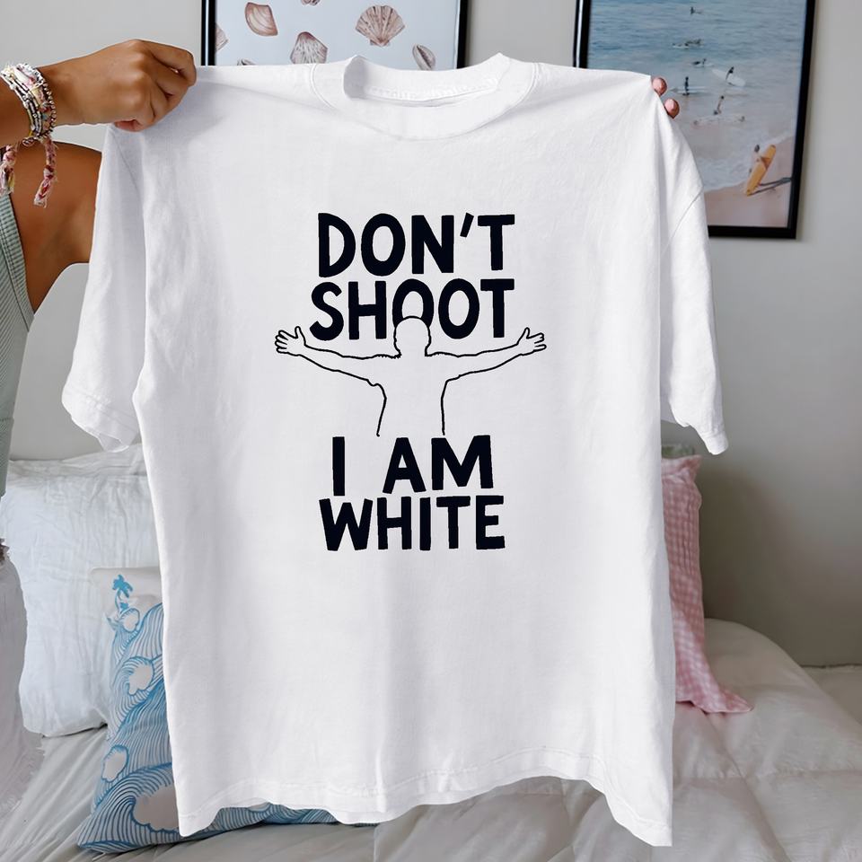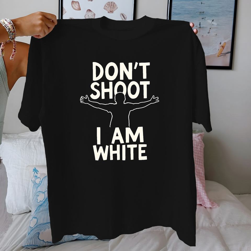 Silueta con texto DON T SHOOT Camiseta de mujer de algodón puro ajuste cómodo