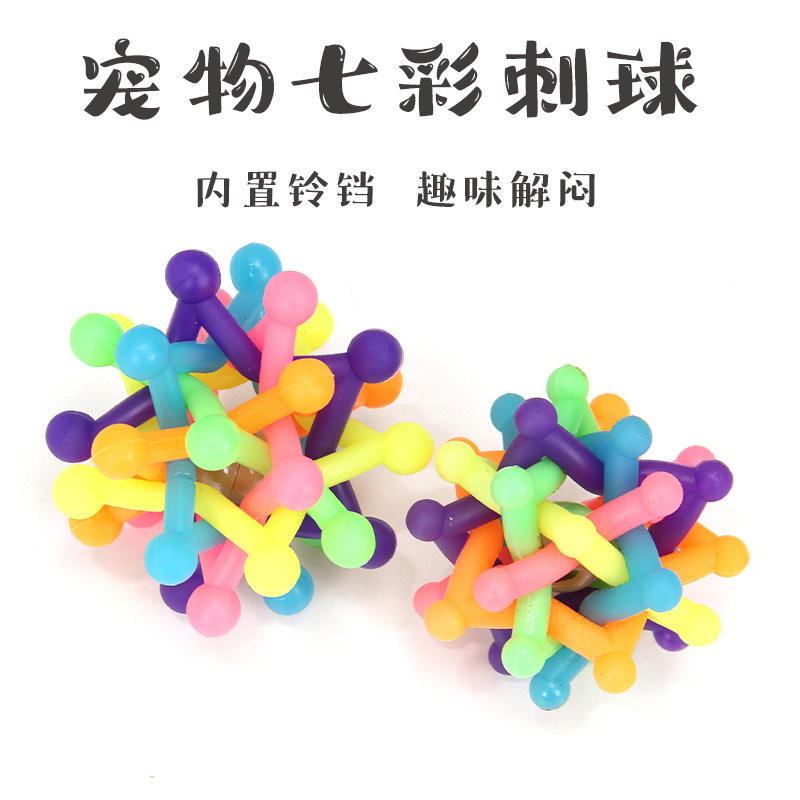 Juguete para mascotas de silicona resistente a mordeduras de colores para gatos, perros y pájaros con una bola de pinchazo, bola de plástico duradera