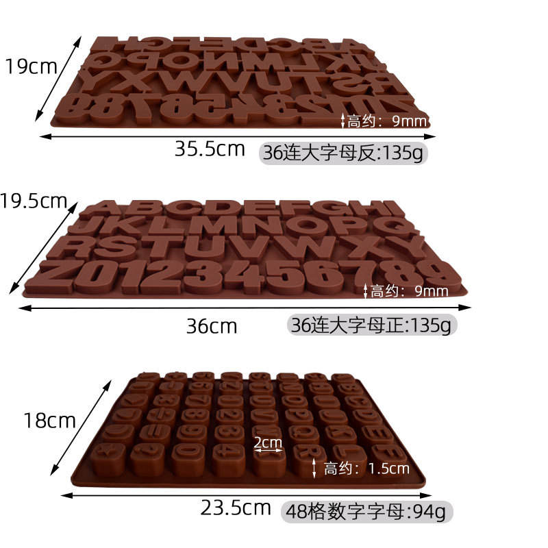Juego de moldes de silicona para hornear chocolate, moldes para decoración de pasteles con números y letras, formas 9, 52, 49, 0-9, herramientas para hornear y repostería