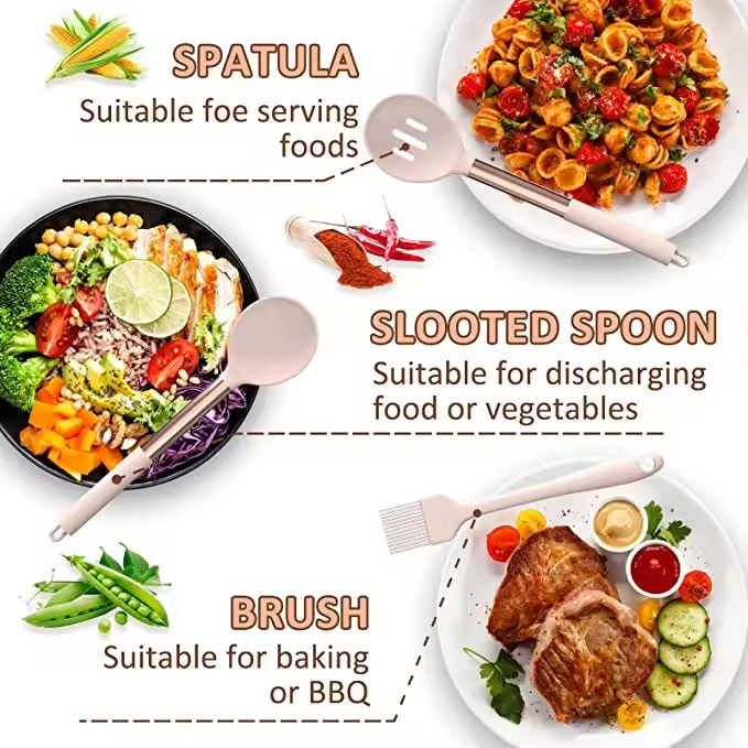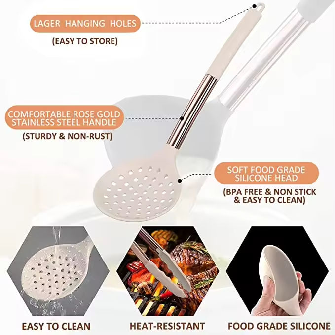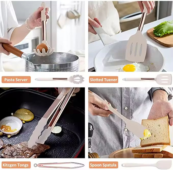 Juego de utensilios de cocina de silicona con mango de cobre, 24 piezas, utensilios de cocina antiadherentes y resistentes al calor
