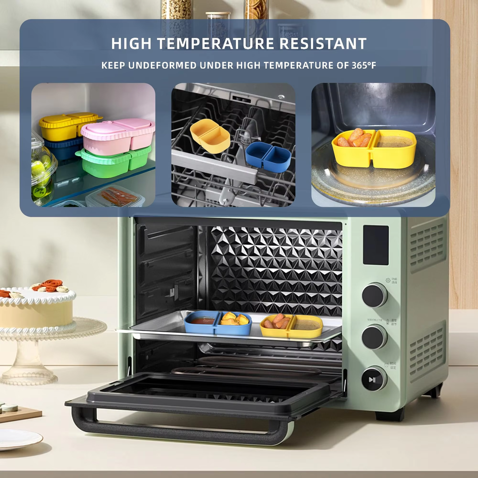 Caja de Silicona para Condimentos con Doble Compartimento y Tapa, Contenedor de Silicona para Snacks