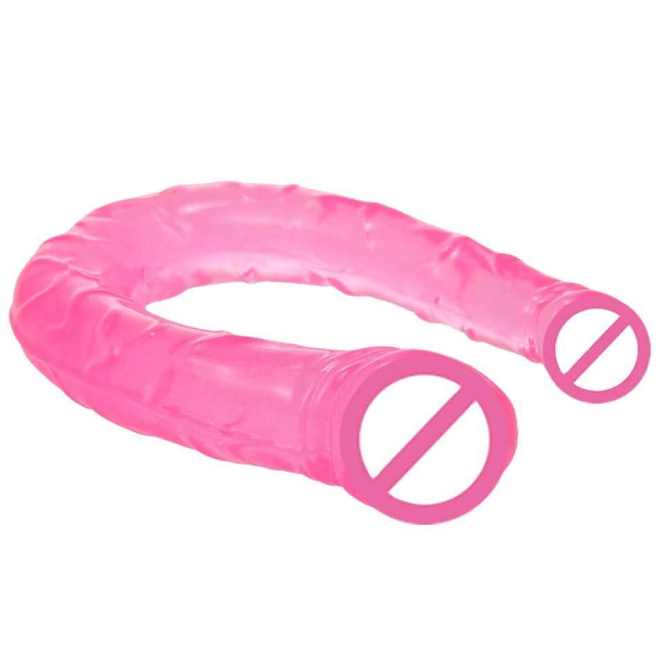 Consolador transparente Flexible de doble extremo de silicona, Dong largo para juego Anal lésbico, consolador realista de doble cara para adultos 09618678282