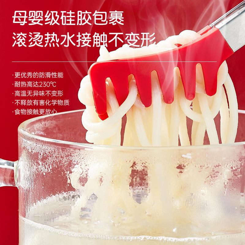 Pinza de silicona para alimentos de 9 pulgadas, de acero inoxidable, resistente al calor, para pasta, olla caliente, repostería, barbacoa, carne