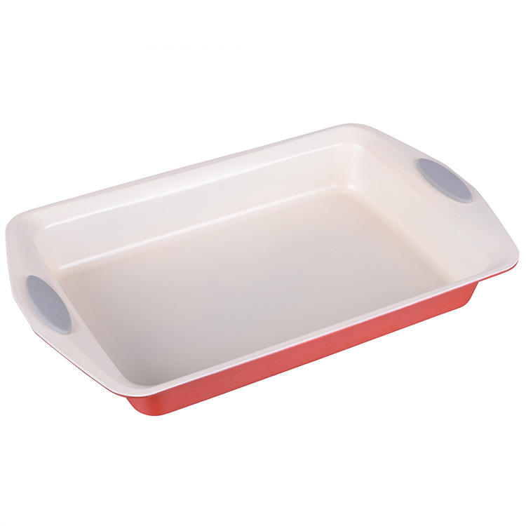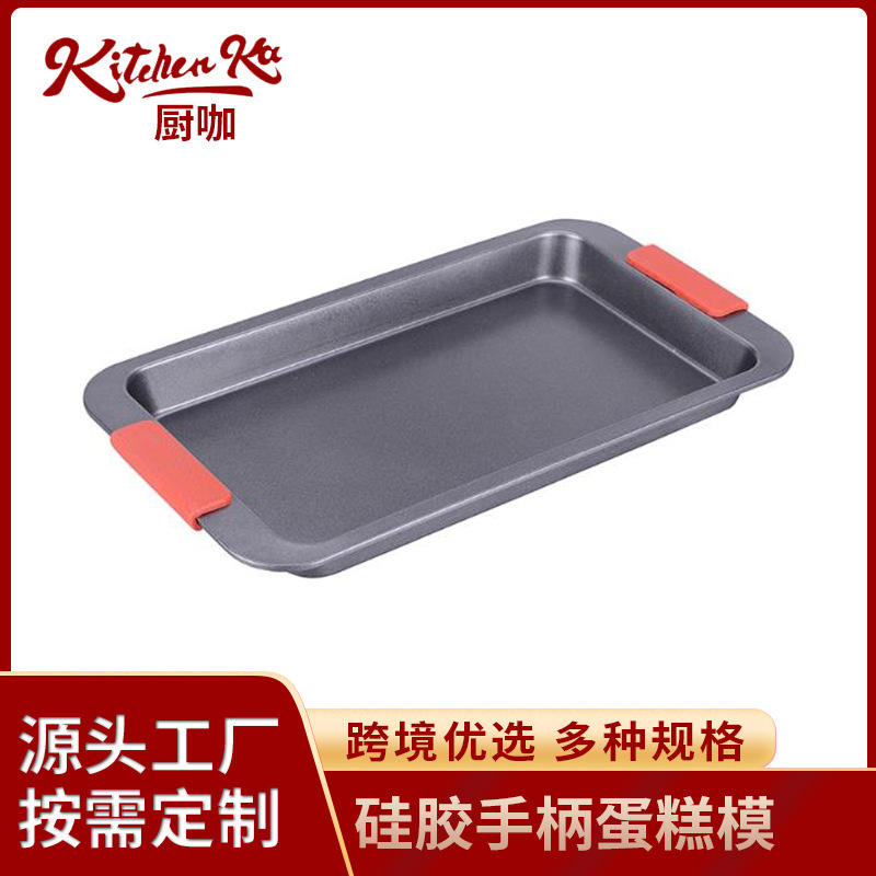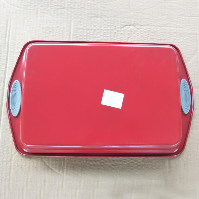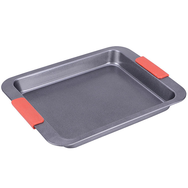 Bandeja para hornear rectangular con mango de silicona, antiadherente, de acero al carbono, apta para horno, para productos horneados.