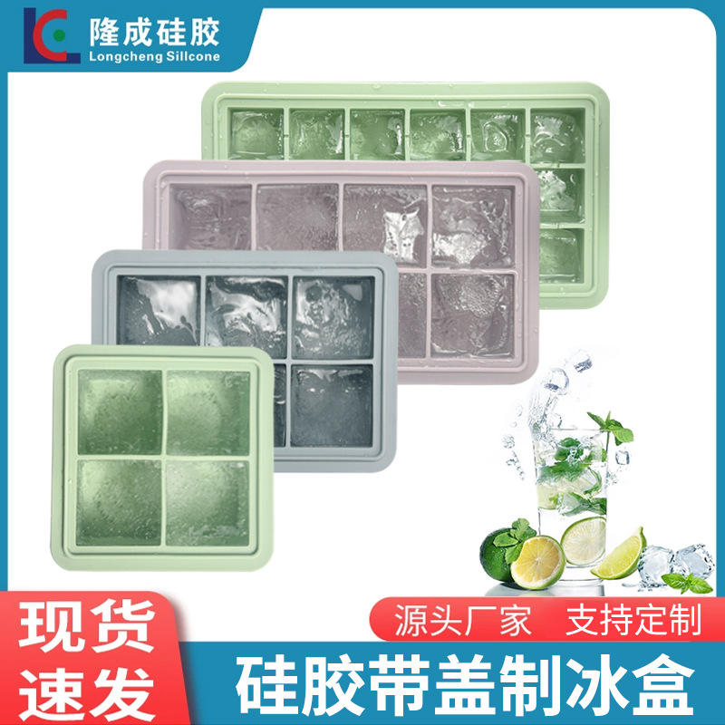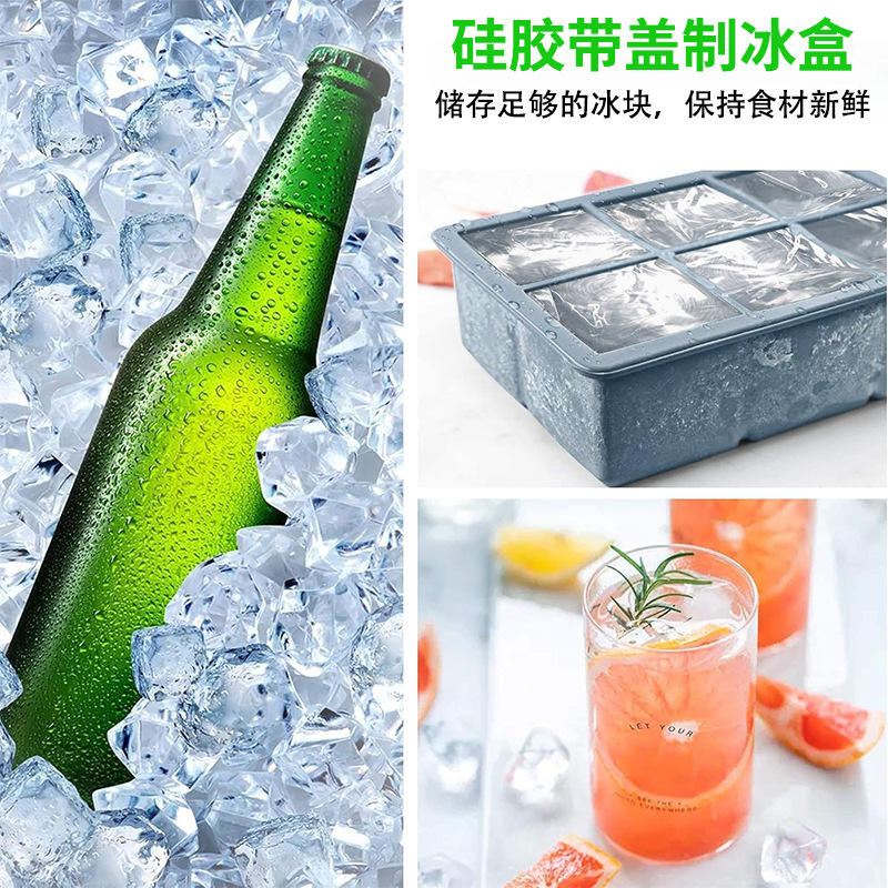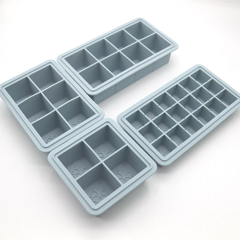 Bandeja de hielo de silicona con 4 compartimentos cuadrados y tapa, fácil de limpiar, para whisky, tamaño grande