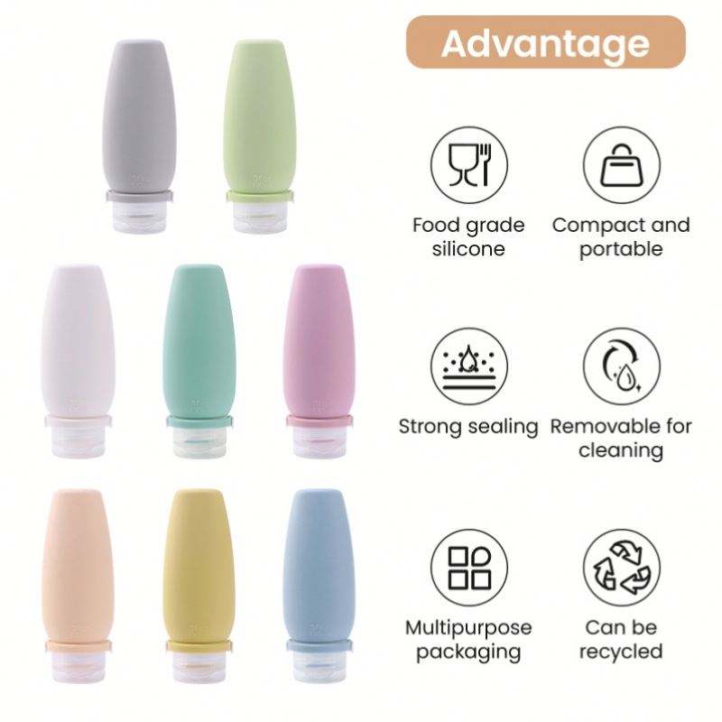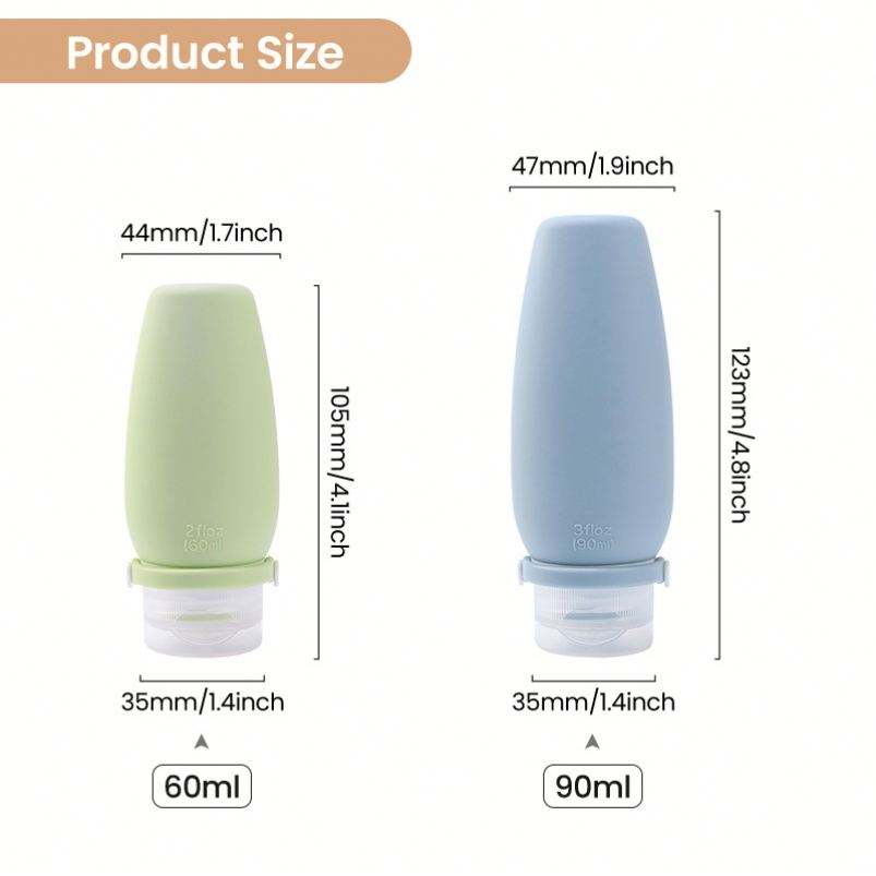 Nombre del artículo:Set de botellas de silicona rellenables y reutilizables para champú, ideal para viajes y artículos de tocador