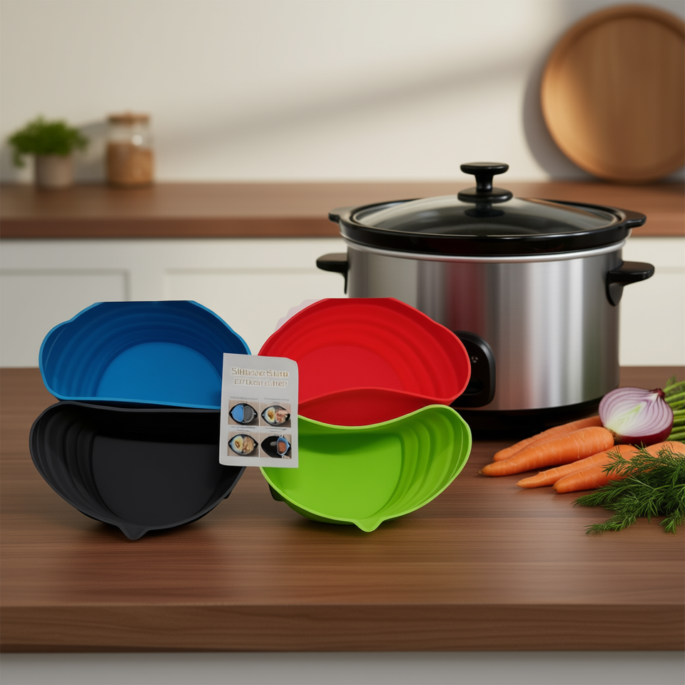 Revestimiento de silicona para olla de cocción lenta, inserto de cocina reutilizable, 4 colores, duradero, ligero, portátil, para ollas de cocción lenta