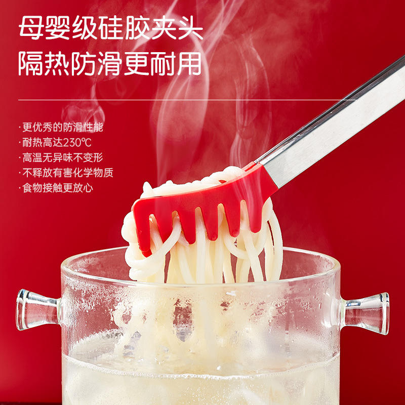 Silicone Stainless Steel Food Clips Red Comb Shape Dishwasher Safe Multi Functional Kitchen Salad Noodle Buffet Tools
