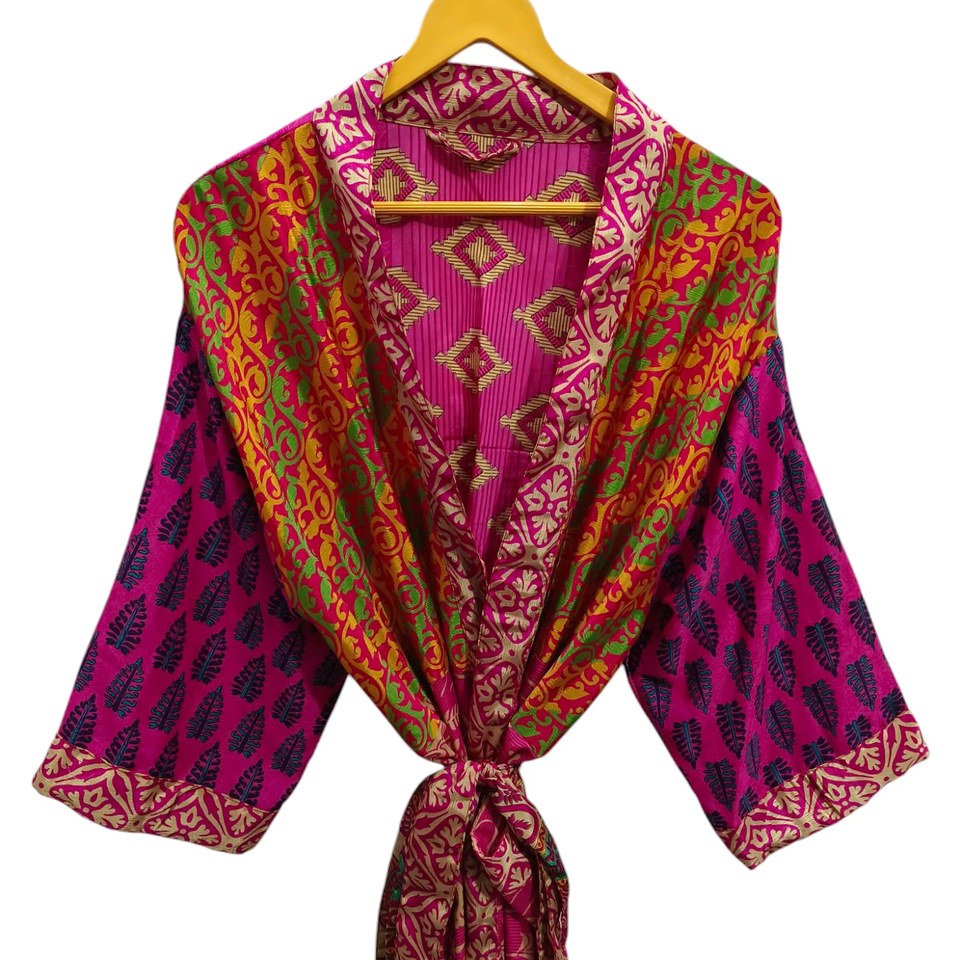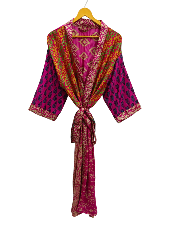 Albornoz de seda Bata de verano Bikini Cover Up Ropa de noche Bata larga, Kimono Sari de seda reciclado vintage indio hecho a mano,