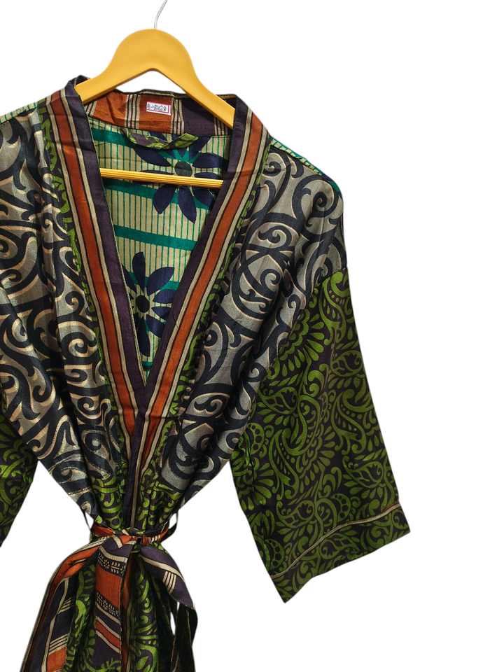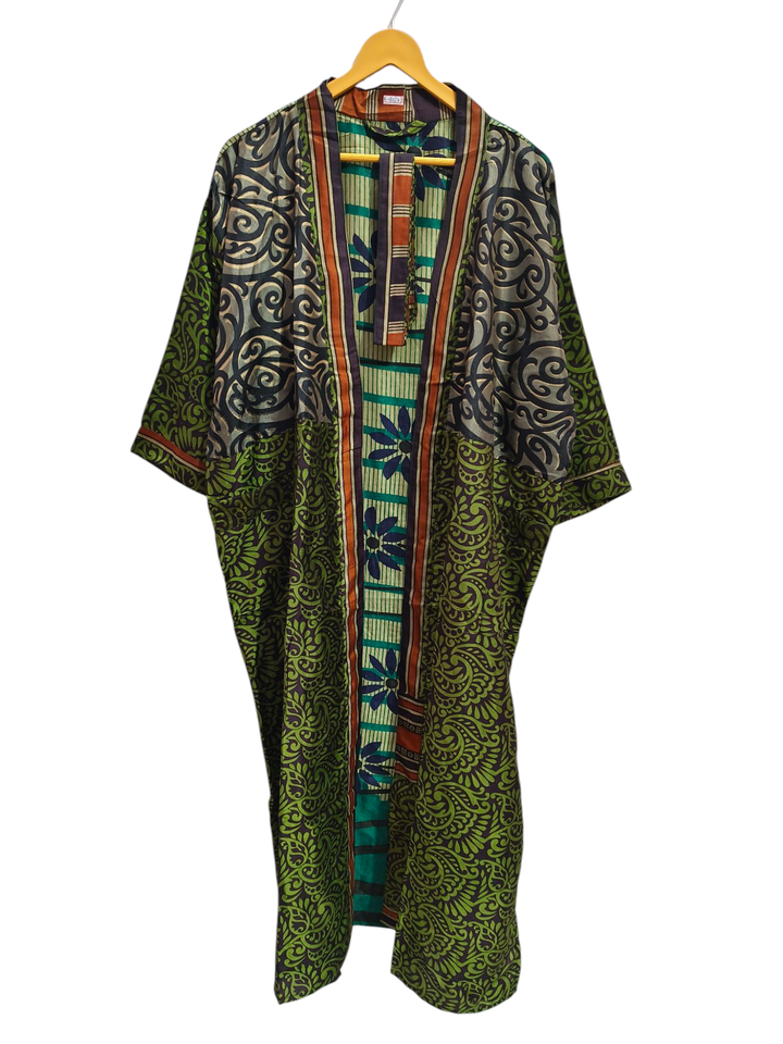 Albornoz de seda Bata de verano Bikini Cover Up Ropa de noche Bata larga, Kimono Sari de seda reciclado vintage indio hecho a mano,