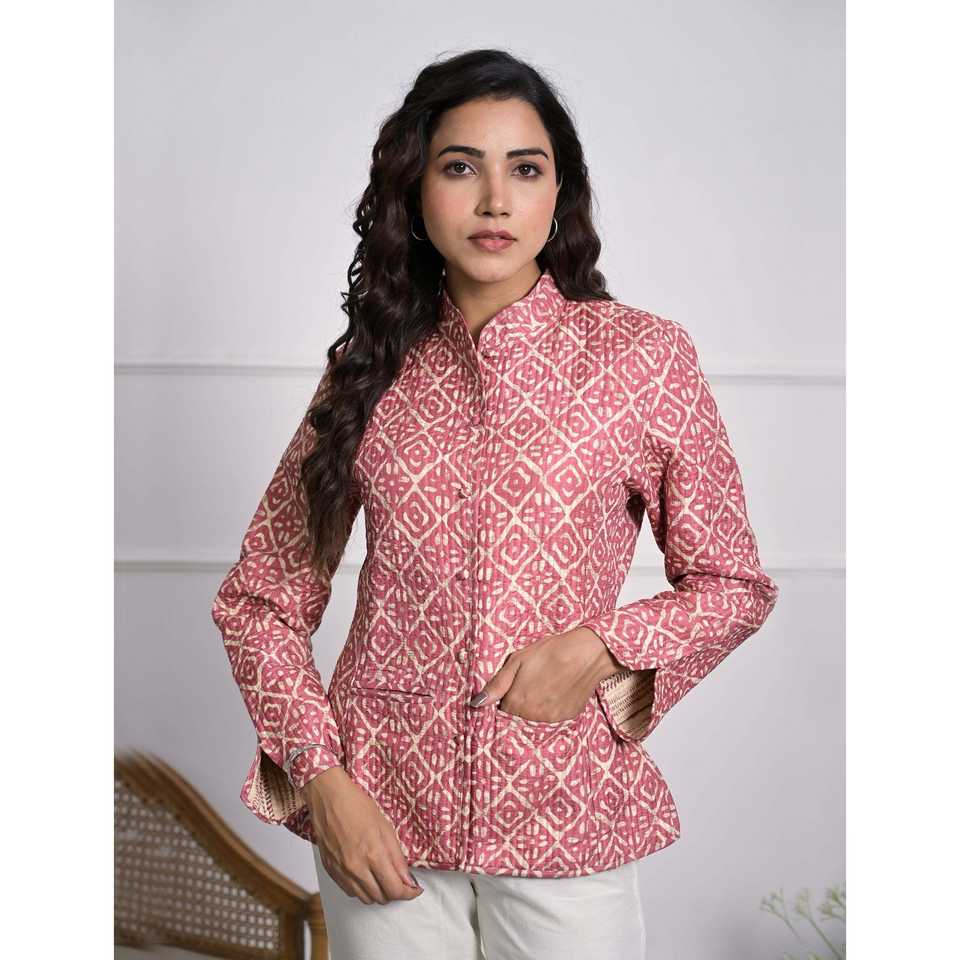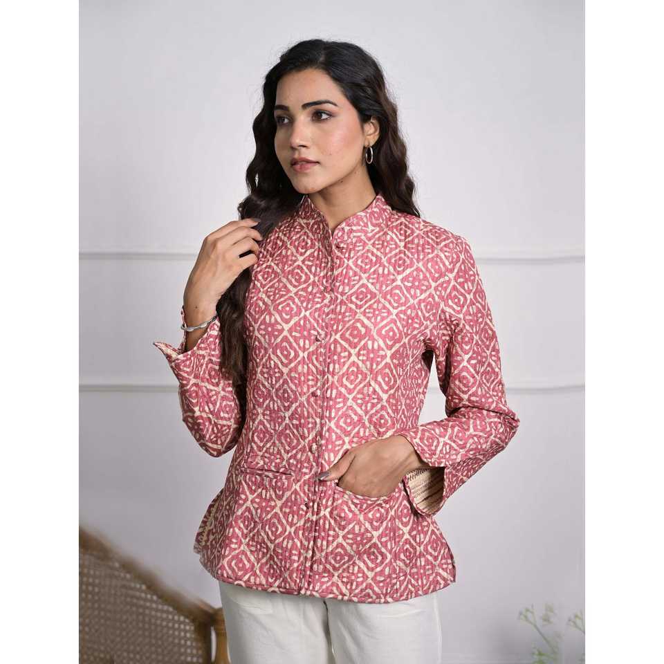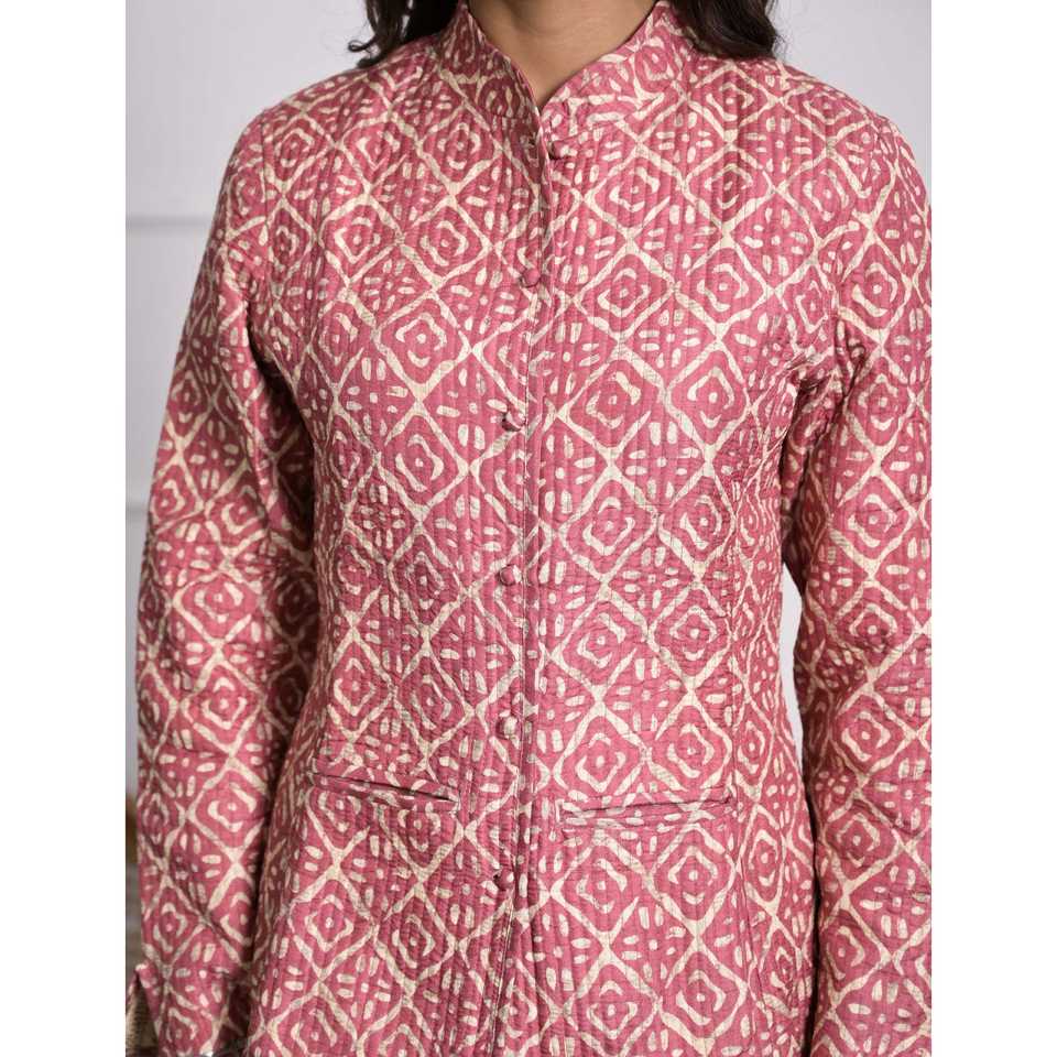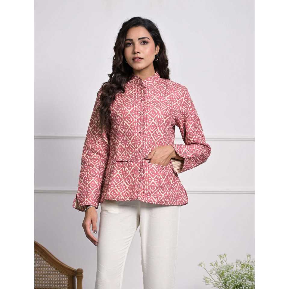 Chaqueta de Invierno Reversible con Estampado de Bloques de Seda y Decoración de Botones