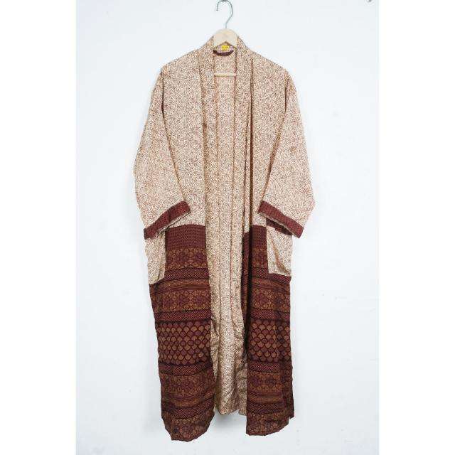 Bata de seda de longitud completa con cuello en V y cordón, diseño patchwork, mangas tres cuartos, para todas las estaciones, invierno, casual, lujo, moda