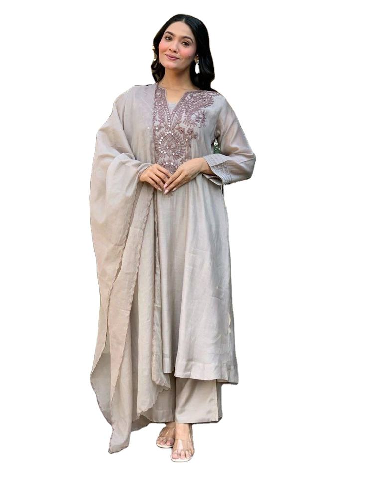 Conjunto de Kurti de Fiesta Elegante con Bordado Pesado de Seda y Mangas Largas Acampanadas para Mujer y Niña