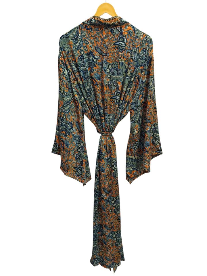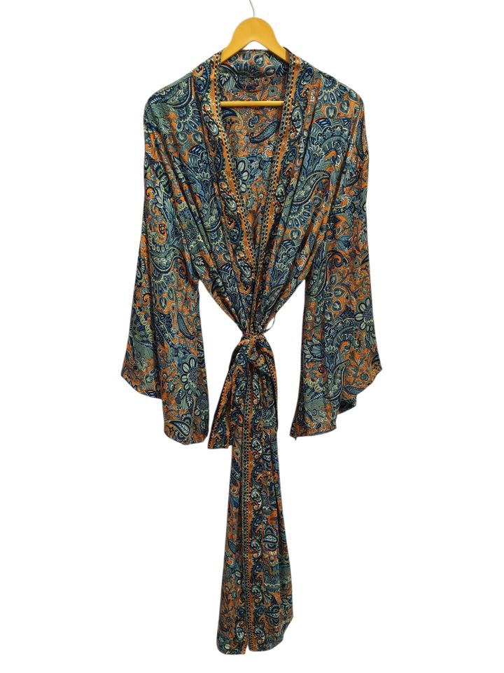 Kimono de seda para mujer, ropa de noche para mujer, bata larga, Kimono Sari de seda reciclada Vintage indio con estampado Floral,
