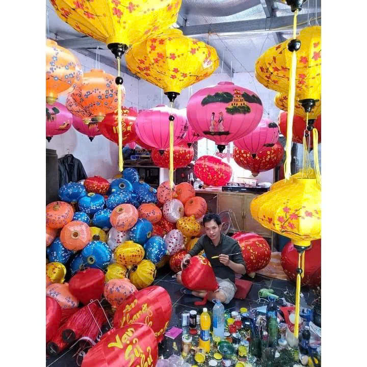 Farol de Seda, Textil de Seda Fina con Marco de Anillo de Hierro para Decoración de Sala de Estar, Estilo Clásico Asiático de Hoi An, Vietnam