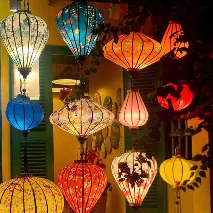 Linterna de seda Artesanía tradicional de Vietnam para decoración de bodas Hotel Resort y celebraciones festivas