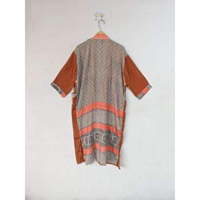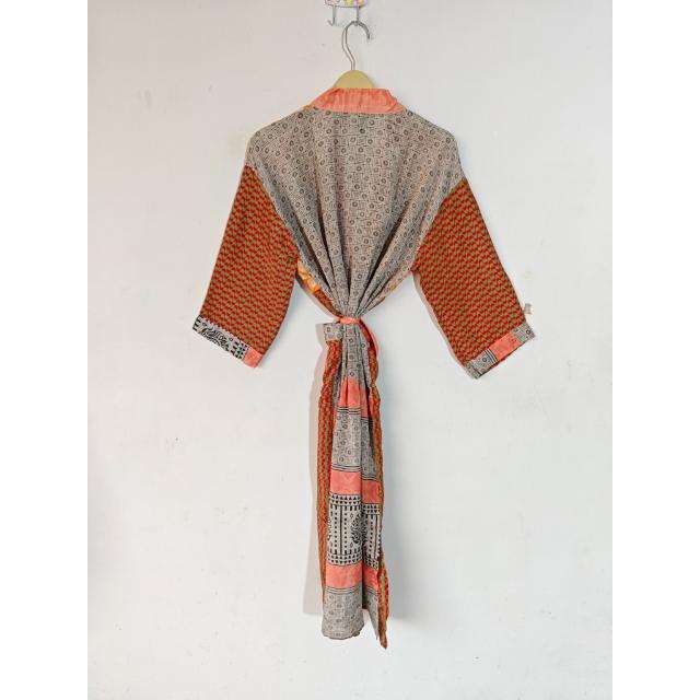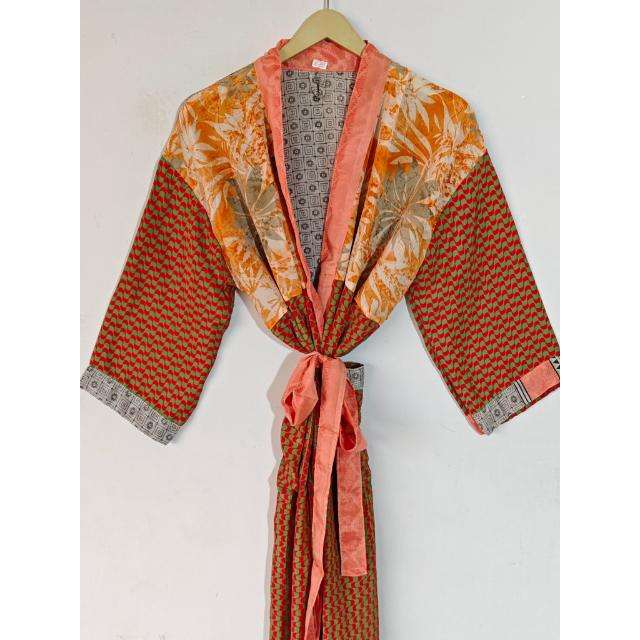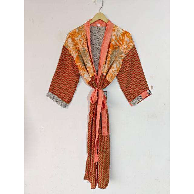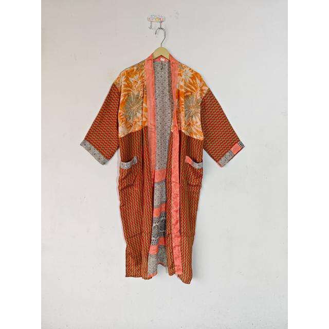 Kimono Vintage único de seda para mujer, Kimono Sari de seda india, vestido de noche, Albornoz de seda, ropa de dormir, Kimono abierto con cinturón