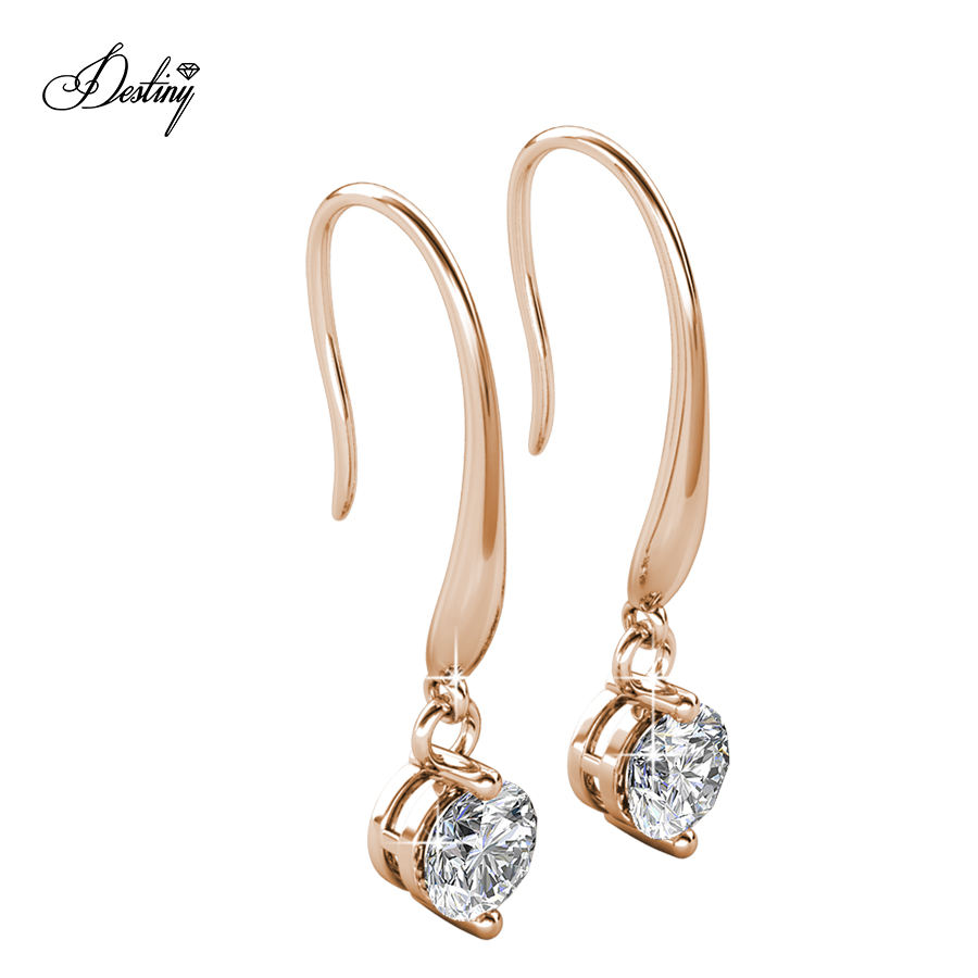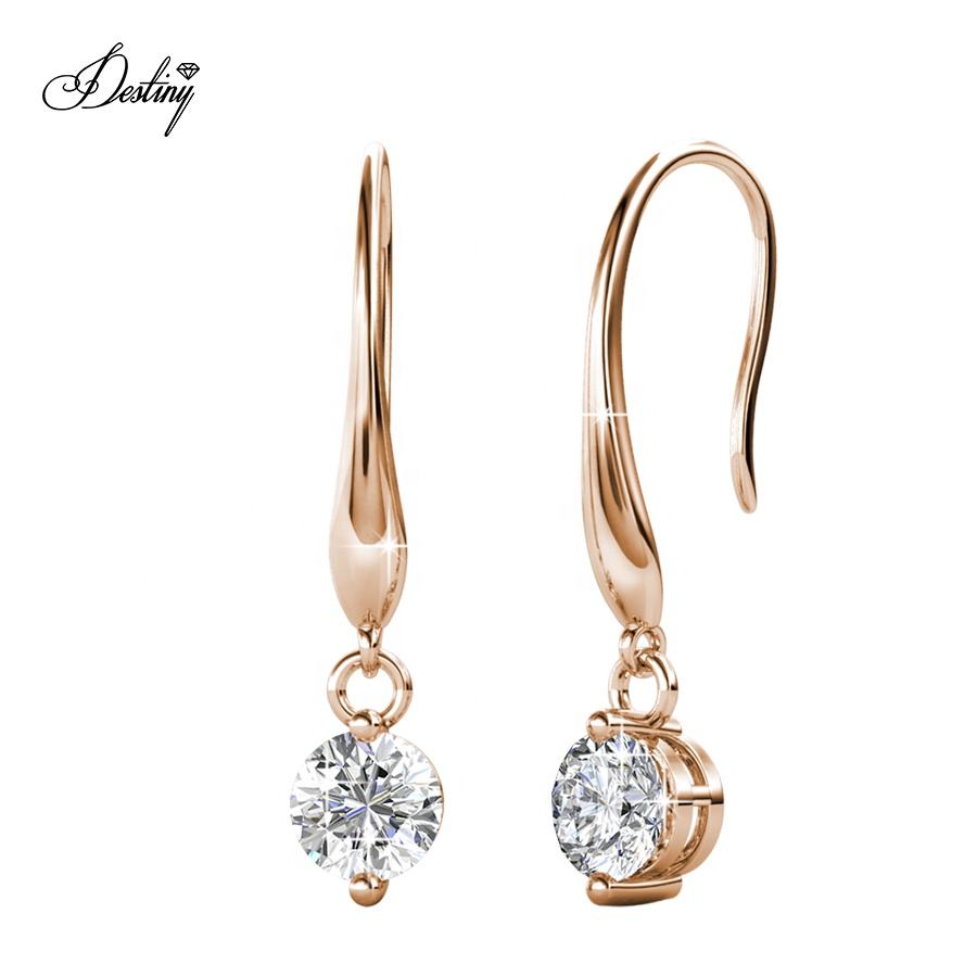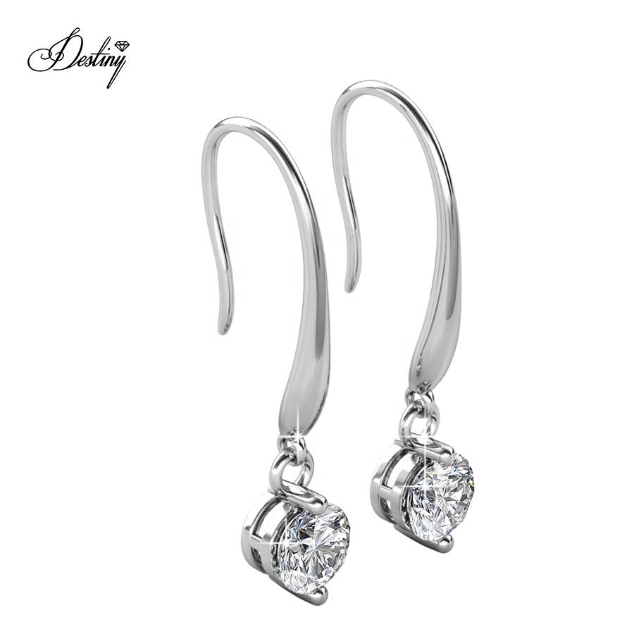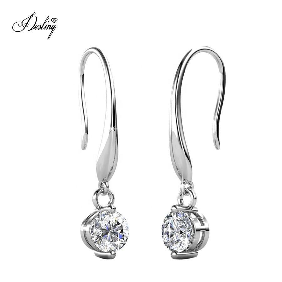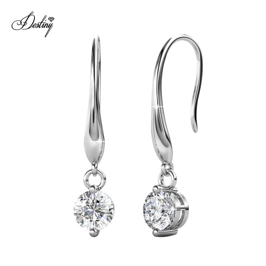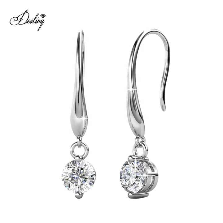 Pendientes Colgantes Hipoalergénicos de Plata 925 con Cristales Swarovski y Adornos de Daisini Redondos para Aniversario de Bodas