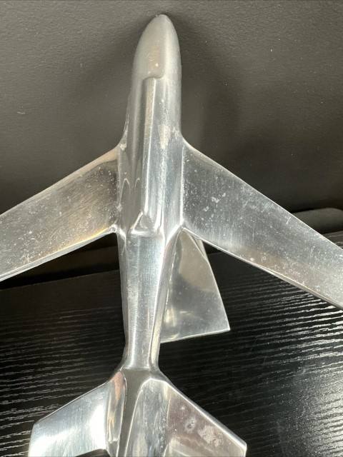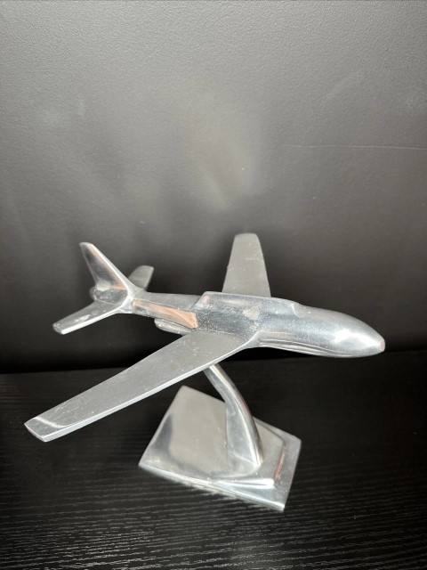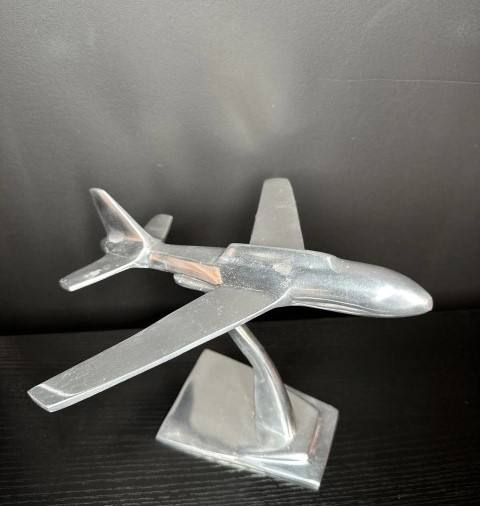 Estatua de chorro de avión de aluminio plateado, exhibición decorativa de escritorio de oficina, escultura de chorro, modelo de avión, figurita de Metal coleccionable