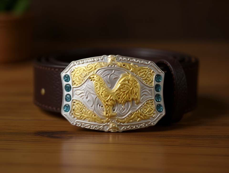 Hebilla de cinturón grande plateada y dorada de 5.0 cm con piedras turquesa, estilo occidental