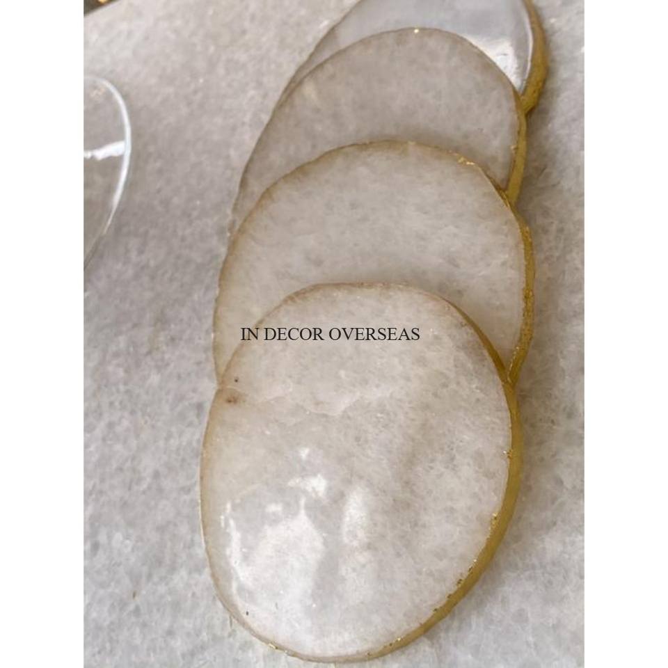 Posavasos de mármol blanco de forma cuadrada con bordes de diseñador únicos de color plateado y dorado con soporte de aluminio fundido de proveedor indio
