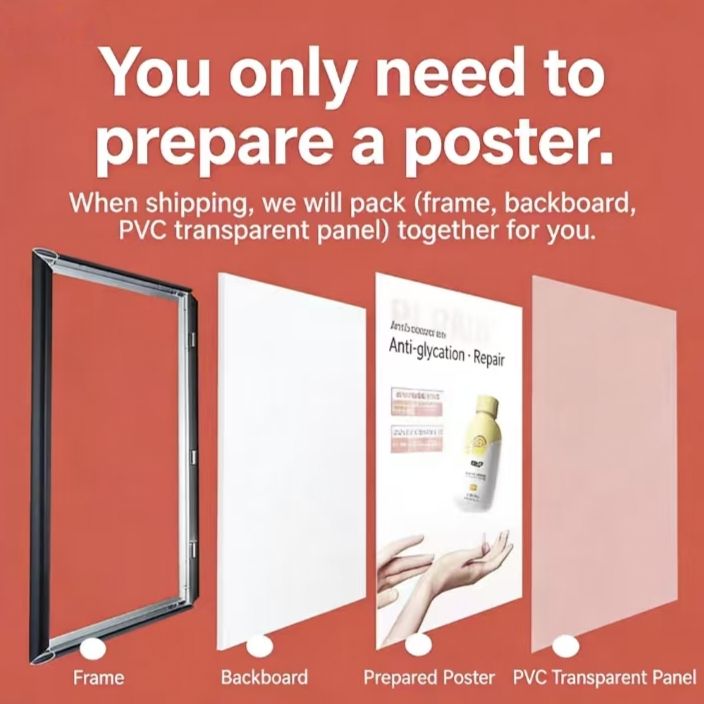Marco de Exhibición de Aluminio Anodizado Plateado de 25 mm con Apertura Rápida para Señalización Comercial y Uso de Información