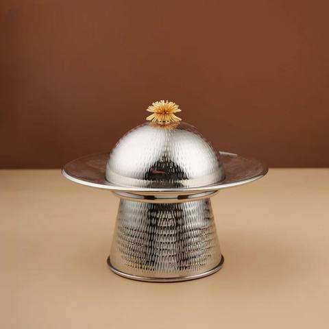 Tazón de Madera y Metal con Diseño Árabe Plateado, Estilo de Medio Oriente, para Dátiles, Utensilios de Cocina, Libre de Plomo, Duradero y Ecológico