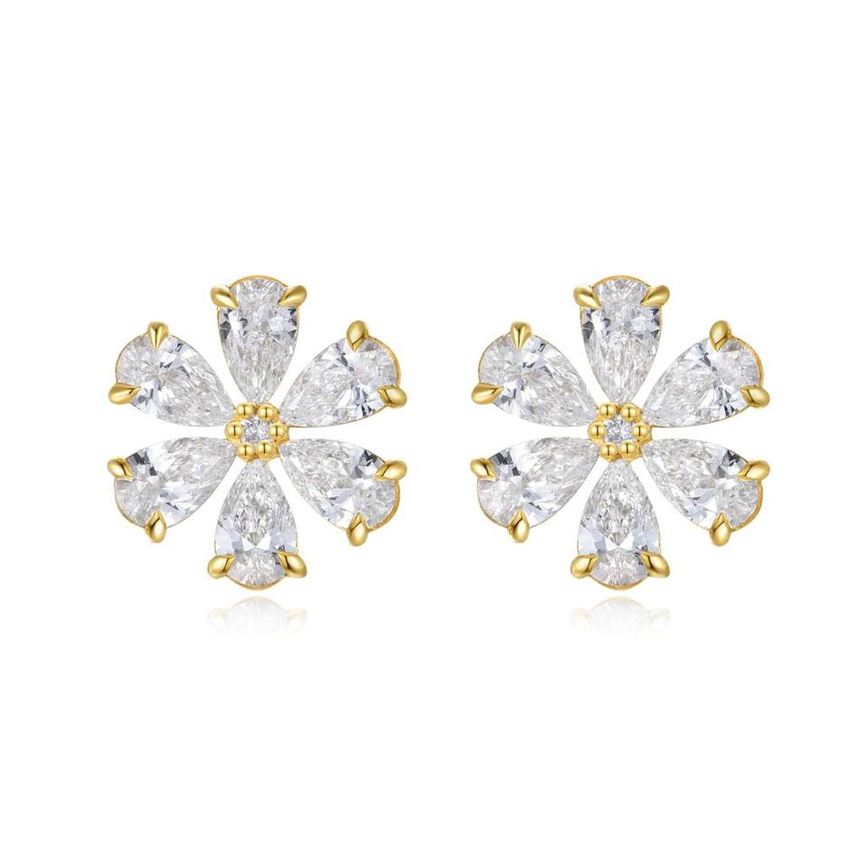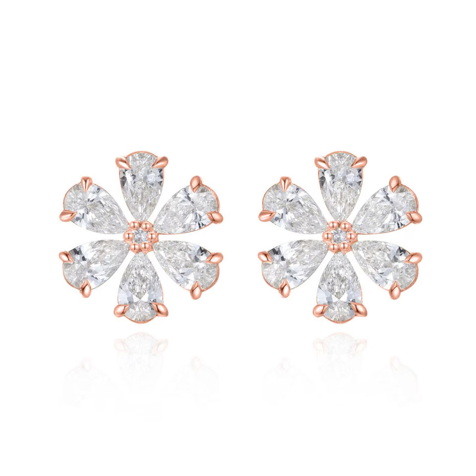 Pendientes de Plata con Diamantes de Laboratorio en Forma de Flor - Plata de Ley S925 Hechos a Mano, Hipoalergénicos y Brillantes