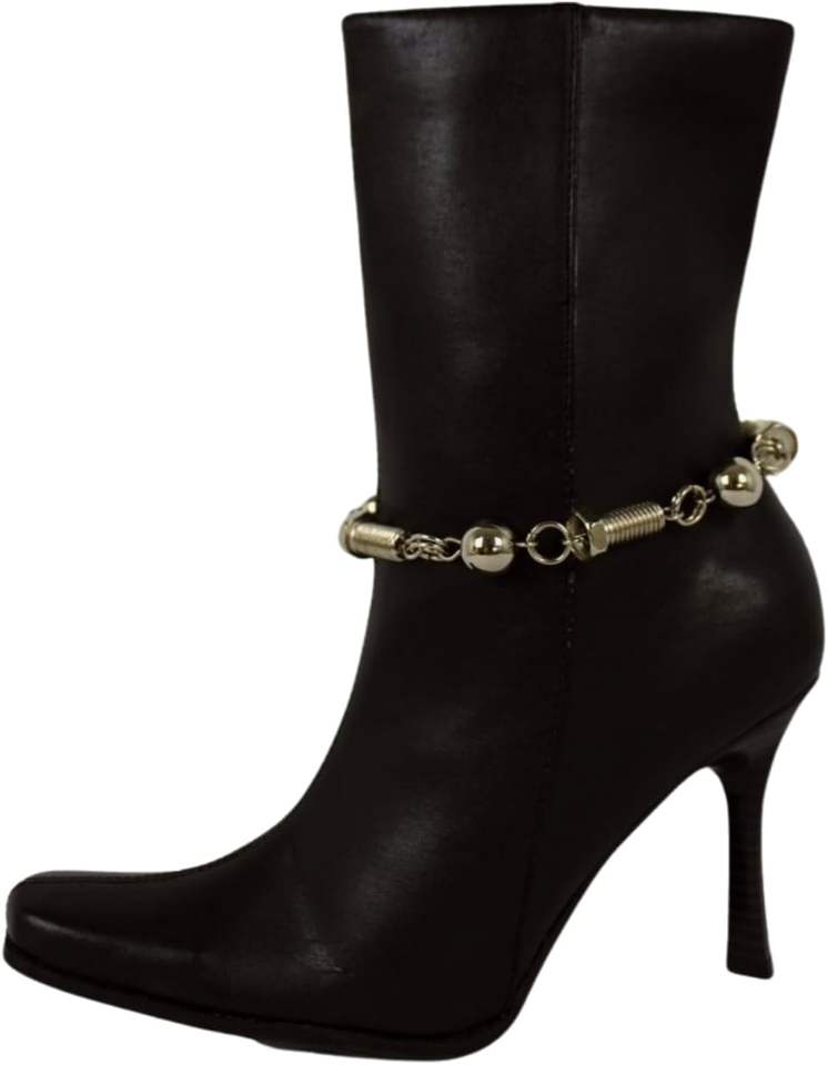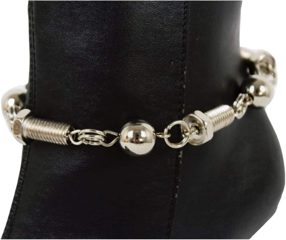 Pulseras de cadena plateadas para mujer, con dijes de tornillo y bola, joyería para botas, conciertos, rodeos y fiestas