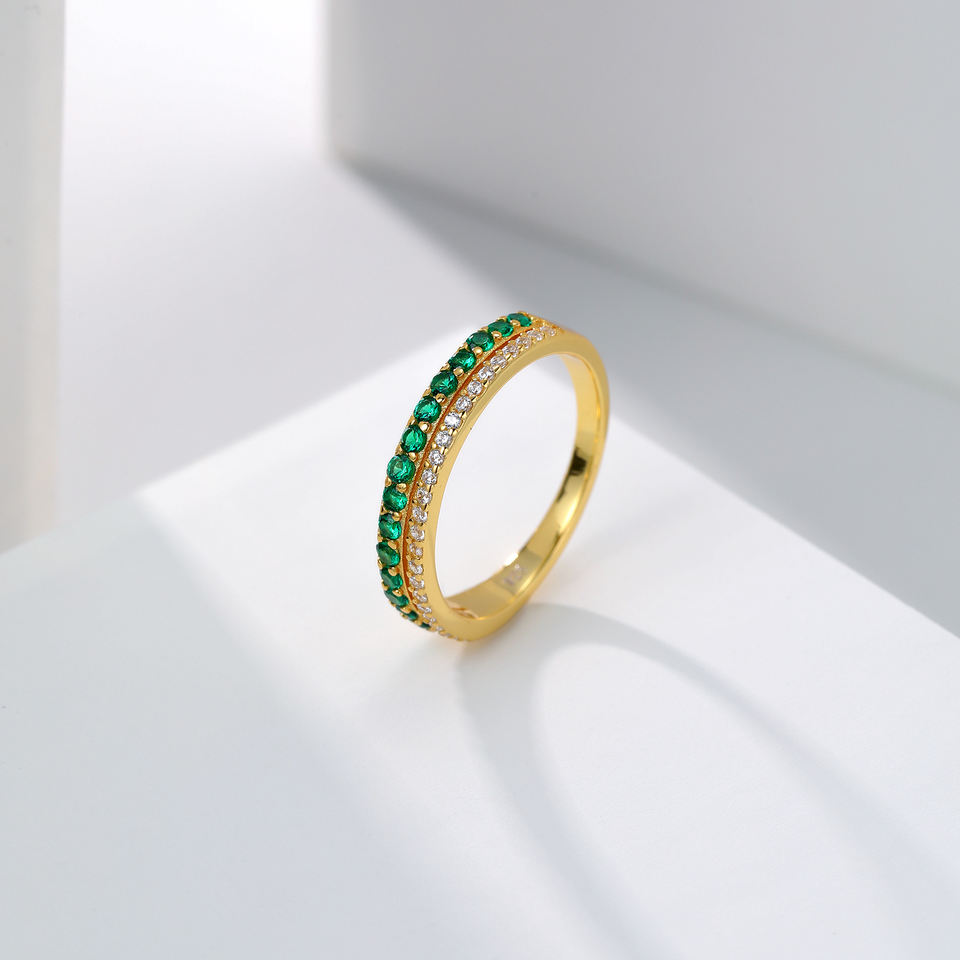 Nombre del Producto:Conjunto de anillos de plata 925 con circonita verde y baño de oro de 18 quilates de joyería fina