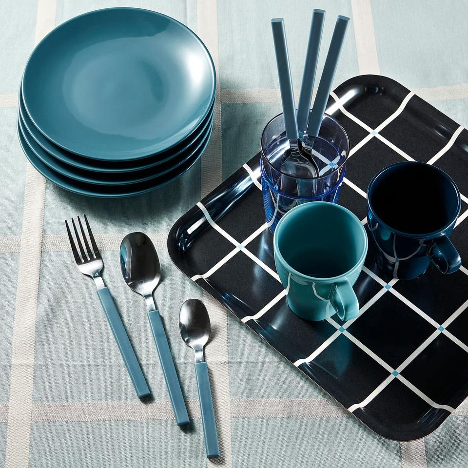 Elegante juego de cubiertos de acero inoxidable con acabado plateado Mango de resina Cubiertos Espejo pulido Ideal para embalaje de regalo Restaurante