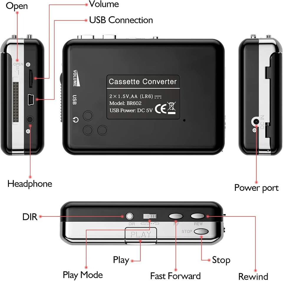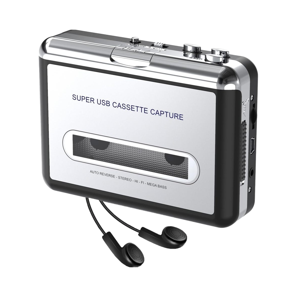Reproductor de Casetes Compacto Plateado, Reproductor MP3 Portátil, Grabador de Música Digital Compatible, Auriculares, Entretenimiento para Viajes y Deportes