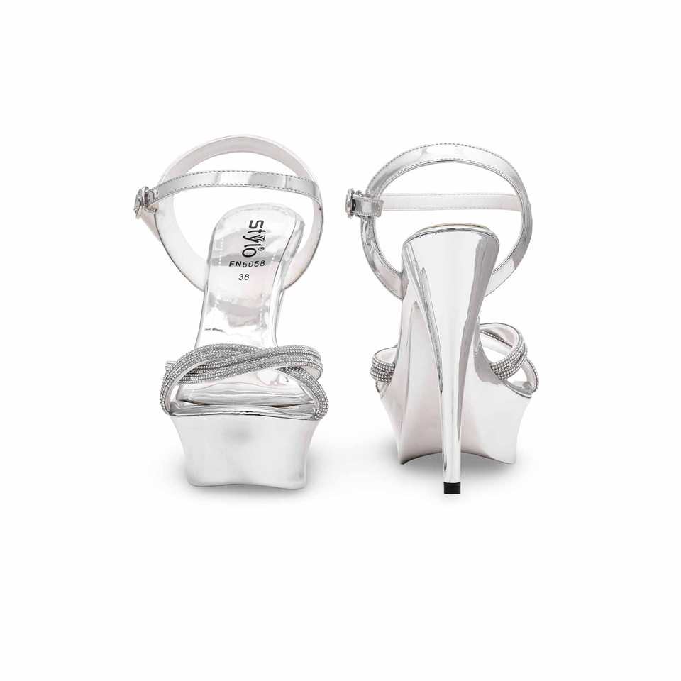 Sandalias de tacón de fantasía plateadas para novia FN6058