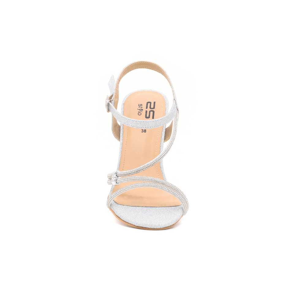 Sandalias de tacón de Punta abierta de lujo de plata para las mujeres de moda con cordones de cierre para las bodas y las mujeres de la Parties-FN5557