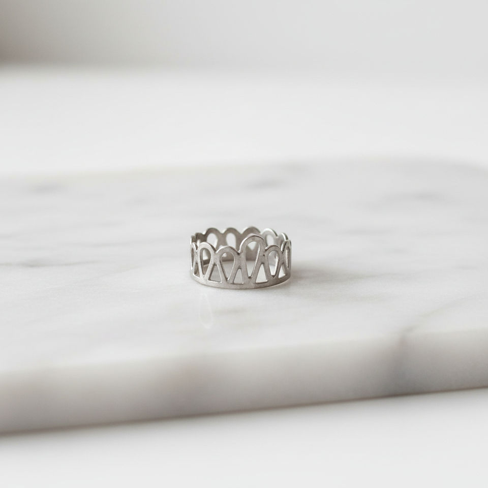 Anillo de Corona de Corazón Relleno de Plata - Diseño de Corazón Calado
