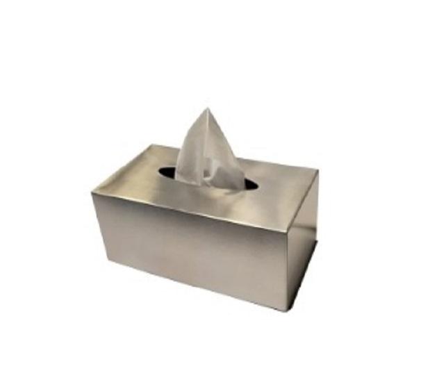 Juego de dos cajas de pañuelos de metal con acabado plateado, soportes de pañuelos de acero inoxidable para mesas, comedor, cocina, caja de pañuelos de metal