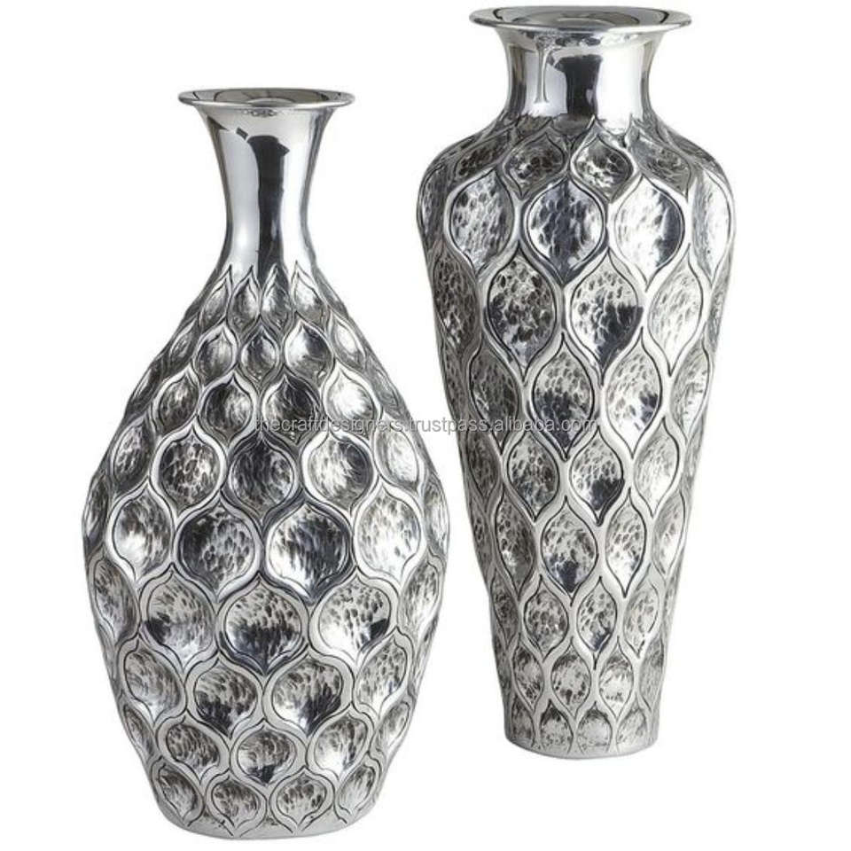 Florero plateado Bombastic Design Aluminio sólido Hogar decorativo Metal Piso Macetas y florero Set Tres piezas
