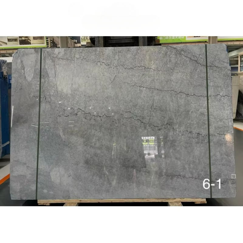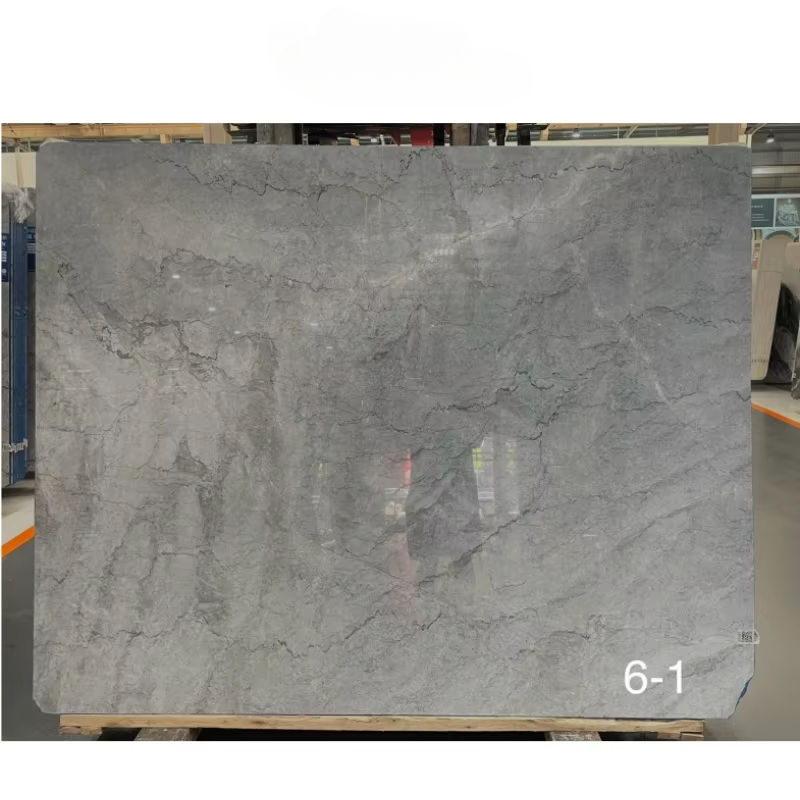 Losa de mármol gris plateado, superficie pulida de diseño moderno para proyecto hotelero, azulejos de pared de losa de piedra de mármol esmaltado pulido