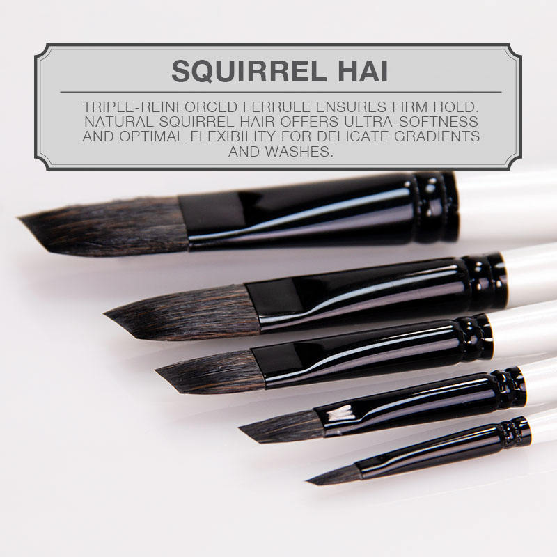 Pinceles de acuarela en ángulo de pelo de ardilla gris plateado juego de pinceles de arte embalaje personalizado para pintura al óleo de acuarela de gouache Acrílico