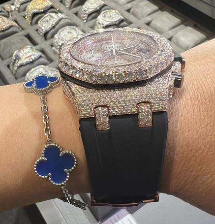 Reloj de Hip Hop plateado Diamantes simulados completos Movimiento de cuarzo Ronda para Esfera de puntero de fecha de hielo-Negocio de moda