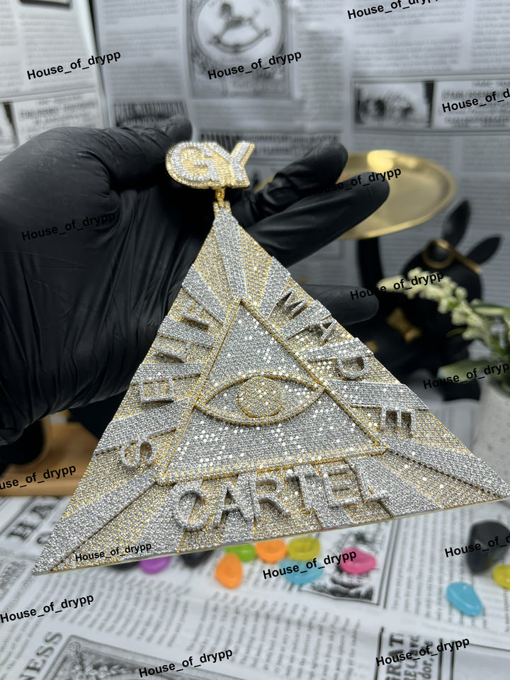 Colgante Piramidal Plateado con Incrustaciones de Diamantes de Imitación VVS Estilo Ojo que Todo lo Ve, Joyería de Moda Hip Hop de Lujo para Fiestas