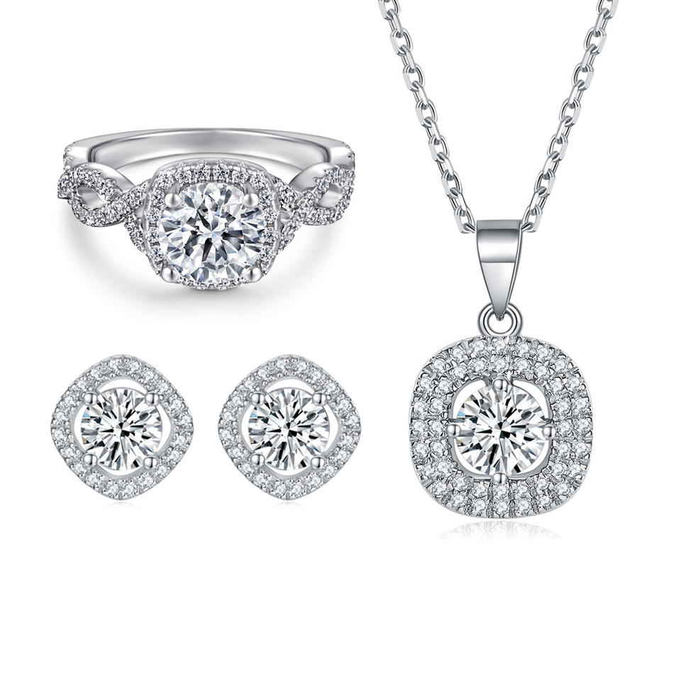 Conjunto de joyas de plata Anillos chapados en rodio Anillo de boda de compromiso de moda Conjuntos de joyas de plata esterlina 925